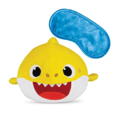 Baby Shark Hora de Dormir Brinque o dia todo ou durma sãoe salvo com a sua pelúcia favorita A pelúcia vem com dois modos: Modo Dia:canta a música tema do desenho ou tire e coloque a máscara e escute opersonagem brincando de esconde-esconde com você. Ouça as reações divertidas dobebê tubarão Modo noturno: apague as luzes ou cubra os olhos do Bay Shark com amáscara de dormir para ele cantar a canção de ninar Goodnight Baby Shark. Abarbatana superior do Baby Shark se ilumina com um suave brilho noturnoTecnologia interativa: a pelúcia Baby Shark pode detectar se está em uma salailuminada ou escura. é também sabe quando sua máscara está ligada ou desligadaquando você joga esconde-esconde