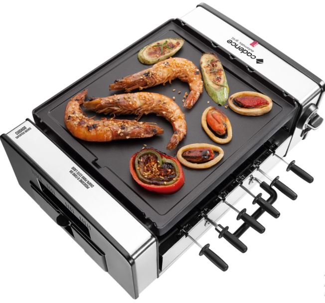 O melhor churrasco do fim de semana vai ser o seu coma Churrasqueira Elétrica Automatic Grill Cadence.Com controle de temperatura baixa, média e alta deixa os alimentos no ponto echega a 240°C fazendo com que a carne asse mais rápido.Dupla face, com o lado liso você assa os alimentos e com o lado grill, grelhaos mais diversos tipos de carnes e legumes. Possui revestimento antiaderentepara que os alimentos não grudem e gaveta removível com coletor de gordura parafacilitar a limpeza do produto.Possui 3 níveis de temperatura, baixa, média e alta, deixandoos alimentos no ponto ideal. Conta com 6 espetinhos giratórios automáticos parapreparar vários tipos de petiscos, carnes e legumes. Dimensões [LxAxP] 390x145x285mm Garantia do fornecedor: 1 ano.