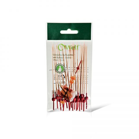 Conjunto de espetos em Bambu – 12cm. Quantidade: 20 espetos Produtos confeccionados em Bambu:Utilizamos o Bambu, por ser uma matéria prima ecológica, autossustentável e com alta resistência. Além de versátil, o Bambu é 30% mais leve que as madeiras de lei. Sua utilização não agride o meio ambiente, pois, quando ceifado rebrota em pouco tempo.
