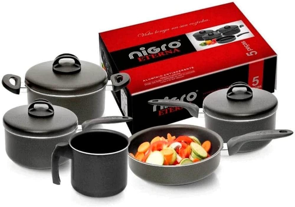 Os Conjuntos Nigro Eterna Foram Desenvolvidos Para Facilitar A Sua Vida. Produtos Em Aluminio Com Espessura De 3mm, Revestidos Com Antiaderente. Os Cabos São Anatomicos Em Baquelite Antitérmico, Não Esquentam E Dão Mais Segurança Ao Manuseio Das Peças. Botão Da Tampas Com Sistema De Saida De Vapor. Design Reto Que Proporciona Maior Capacidade Interna A Todas As Peças, Facilitando A Limpeza E Dando Um Toque Diferenciado Ao Conjunto.Aviso, Imagens Meramente Ilustrativas. O Peso E As Medidas Que Aparecem No Campo Características São Referentes A Embalagem Do Produto.Aviso:Imagens Meramente Ilsutrativas.