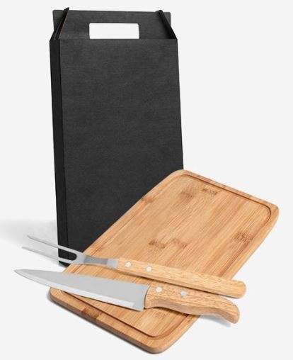 CONJUNTO PARA CHURRASCO EM BAMBU COM INOX E MADEIRA 3 PEÇAS WELF MX-36066