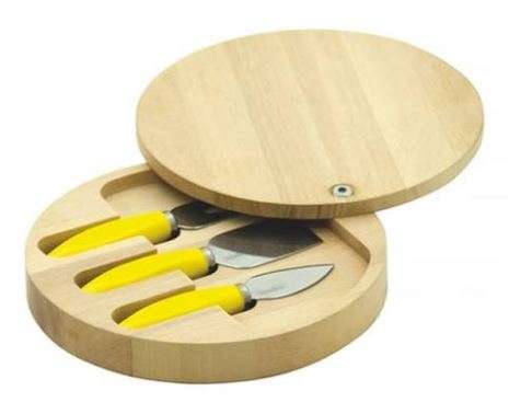 Ideal para servirDesign e praticidadeSeu principal diferencial é a praticidade de uso, sendo muito versátil em todosos momentosConjunto para queijo em madeira maciça curupixáUtensílios em aço inox com cabos de madeira tingidos na cor amarelo bandeiraAcabamento envernizado que proporciona uma camada protetora em verniz incolorrealça sua tonalidade concedendo brilho e um toque mais liso ao produtoProteção antibacteriana MICROBAN