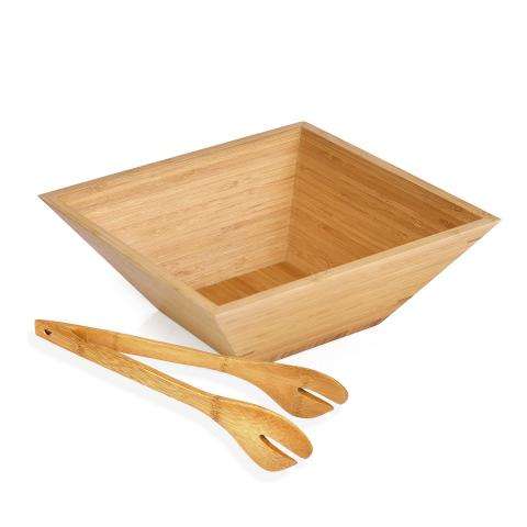 Conjunto para salada em bambu com pegador de 30cm. Dimensões: 28x28x10,5cm Produtos confeccionados em Bambu:Utilizamos o Bambu, por ser uma matéria prima ecológica, autossustentável e com alta resistência. Além de versátil, o Bambu é 30% mais leve que as madeiras de lei. Sua utilização não agride o meio ambiente, pois, quando ceifado rebrota em pouco tempo.