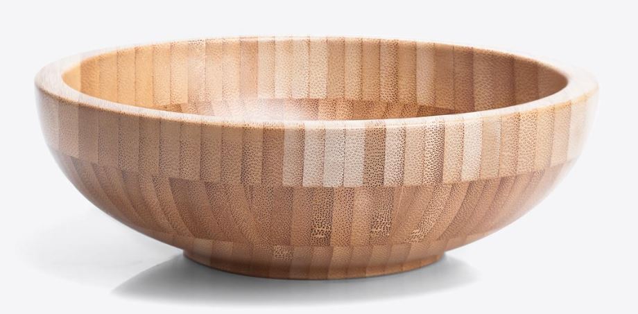 Cumbuca em Bambu. Produtos confeccionados em Bambu:Utilizamos o Bambu, por ser uma matéria prima ecológica, autossustentável e comalta resistência. Além de versátil, o Bambu é 30% mais leve que as madeiras delei. Sua utilização não agride o meio ambiente, pois, quando ceifado rebrota empouco tempo.
