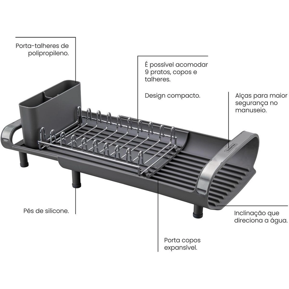 Escorredor De Louça Tramontina Compacto Plurale Preto Inox