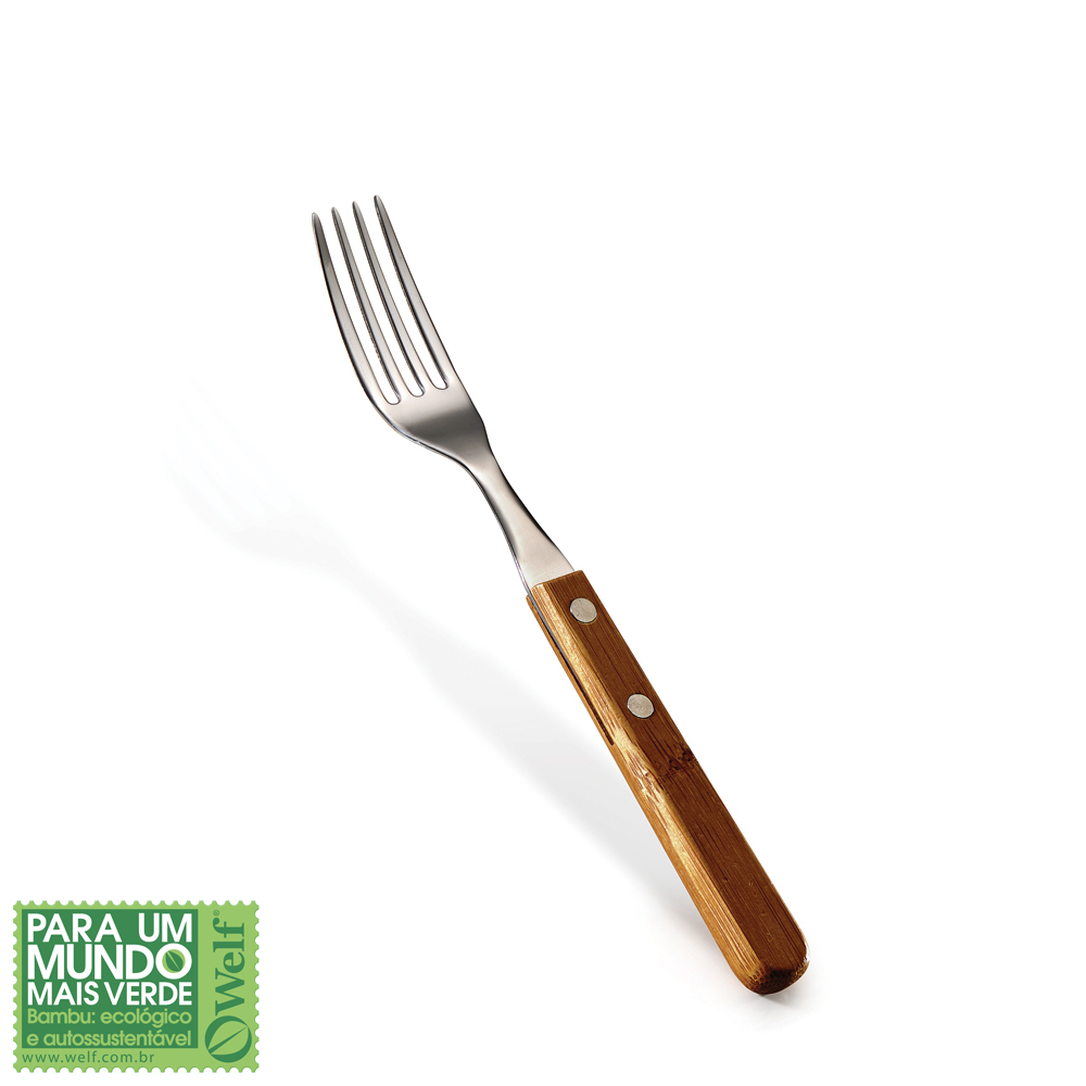 Faca para Mesa em Bambu/Inox. Rebites em Aço Inox 304, um dos mais resistentes à ferrugem e corrosão. Produtos confeccionados em Bambu:Utilizamos o Bambu, por ser uma matéria prima ecológica, autossustentável e com alta resistência. Além de versátil, o Bambu é 30% mais leve que as madeiras de lei. Sua utilização não agride o meio ambiente, pois, quando ceifado rebrota em pouco tempo.