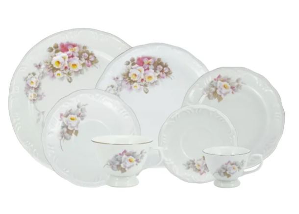 Para uma decoração que combina com delicadeza, requinte e sofisticação, a linha Vitoria é ideal. As flores, delicadamente pintadas em tons pastéis, que levam a graciosidade dos detalhes em relevo nas bordas, junto com o filetado em prata, fecham o pacote de um jogo de jantar perfeito. Com 42 peças, entre pratos de jantar, sobremesa, pratos fundos, xicaras de chá e café. O jogo de jantar de porcelana Schmidt Vitoria traz as porcelanas perfeitas para completar sua cozinha.