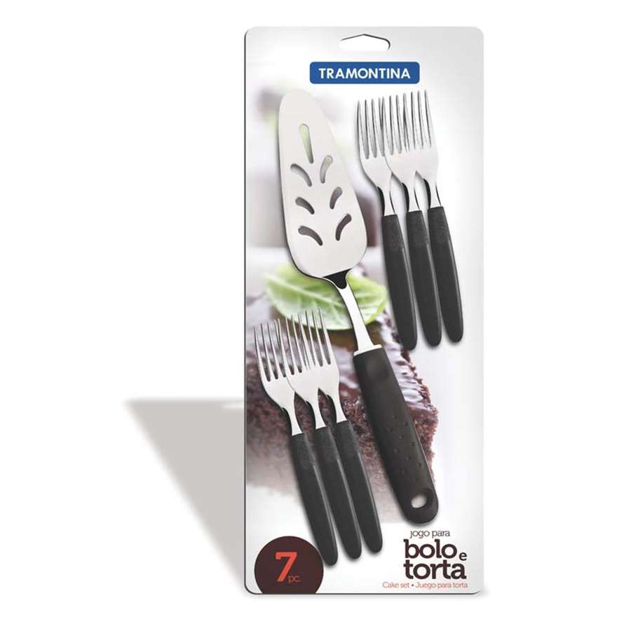 Jogo Para Bolo e Torta 7 pçs Ipanema – Tramontina 23399/057 O Jogo para Bolo e Torta Tramontina conta com 7 peças ideais para ir à sua mesa! Suas lâminas em aço inox e seus cabos em polipropileno dão uma maior resistência e durabilidade ao produto. Seu designer, com cores alegres e diferenciadas chamam atenção, fazendo com que a sua mesa fique ainda mais arrumada para receber seus convidados. Uma fácil limpeza é uma das vantagens do Jogo, podendo ir diariamente à máquina de lavar louças. Marca:TramontinaMaterial:Aço Inox; PolipropilenoPeso: 200 gDimensões da embalagem do produto: (A x L x C)38 x 16 x 2,5 cm Conteúdo da Embalagem: – 06 Garfos em aço Inox Tramontina; 01 Espátula em aço Inox Tramontina.