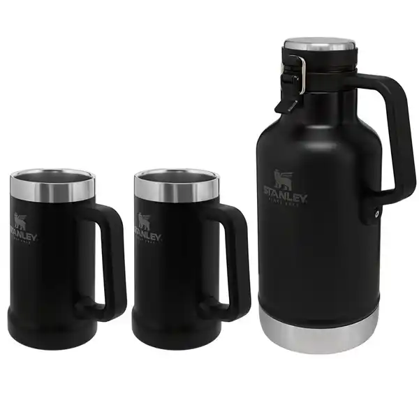 Kit 2 Canecas Cerveja Stanley 709ml E Garrafa Térmica Growler 1,9l Preto Matte