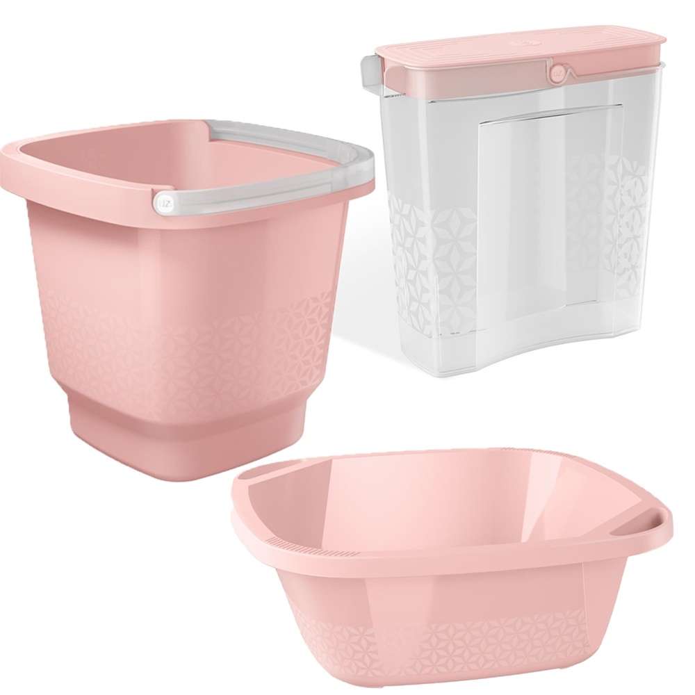 KIT LAVANDERIA PLÁSTICO UZ 03 PEÇAS ROSA