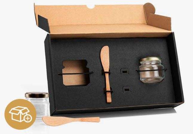 Conjunto para Patê / Geléia. Conta com 2 potes de vidrocom tampa; 2 espátulas em Bambu.