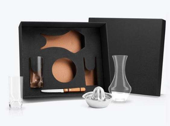 Kit para sucos Conta com jarra e 2 copos em Vidro;espremedor em Inox; faca 4” em Bambu / Inox. Produtos confeccionados em Bambu.