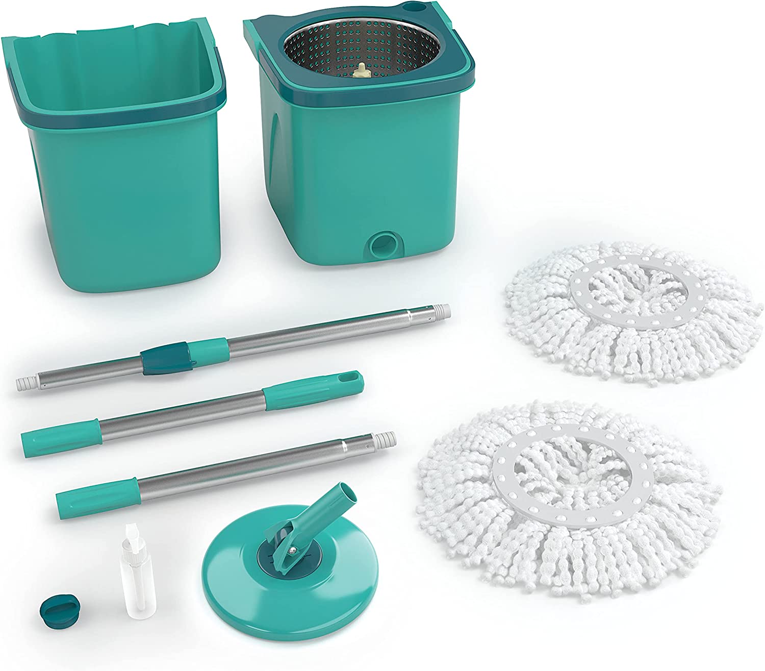 nComponentes incluídos ‎1 Balde para centrifugar 1 Balde para enxágue 1 Cabo telescópico 2 Refis de microfibra 1 Dispenser