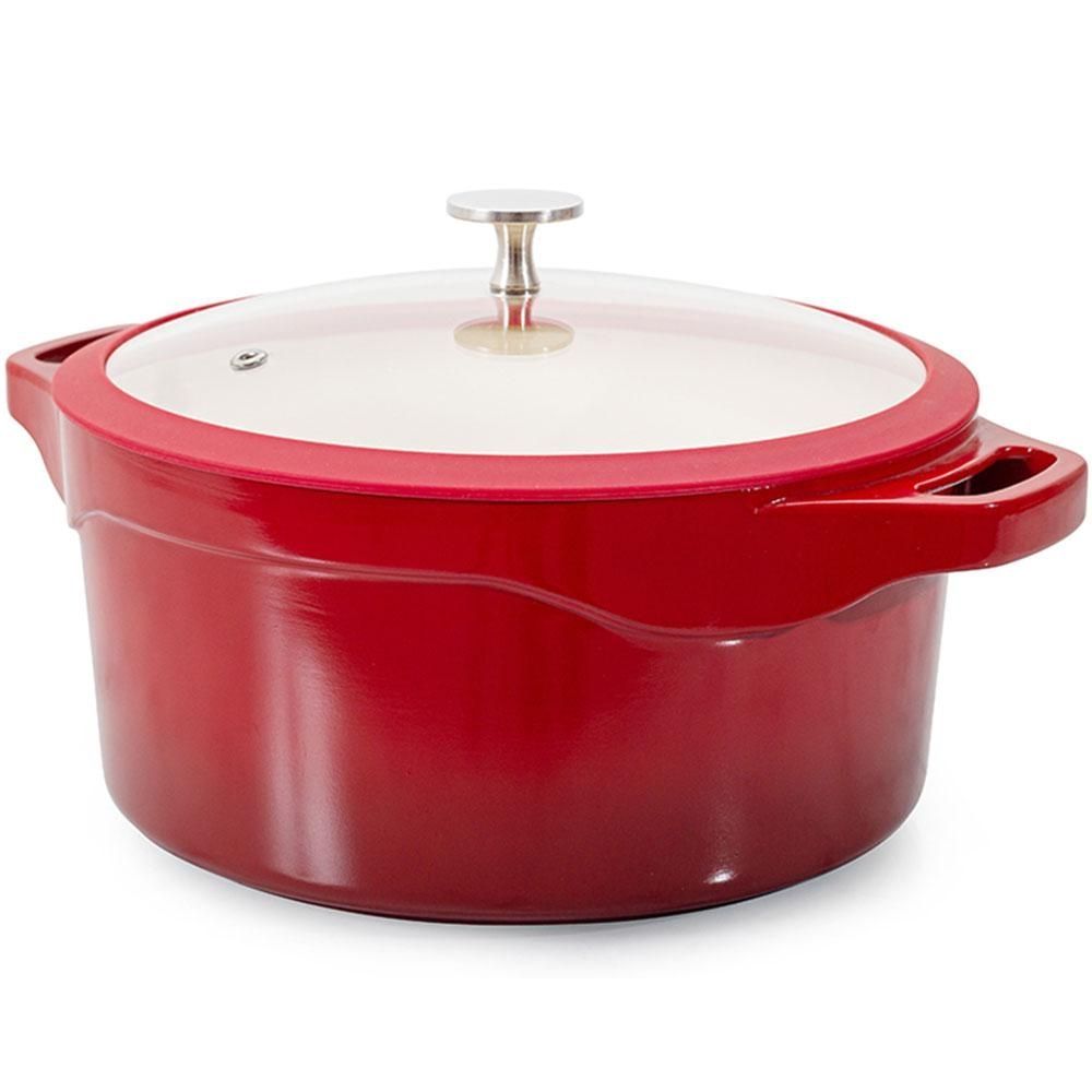 Caçarola Le Cook com Revestimento Cerâmico Red 28 cm 7,2L LC1844A linha Le Cook representa o verdadeiro sonho, além do alto desempenho, o design levará ainda mais beleza e alegria para sua cozinha. A qualidade de cada peça é resultado da união de duas matérias primas para proporcionar máximo desempenho. Bloco denso de alumínio na parte externa, garante rápida condução de calor de maneira uniforme. Revestimento antiaderente cerâmico na parte interna (ecologicamente correto), que permite o cozimento saudável do alimento, protegendo-o de substâncias liberadas por metais pesados presentes em antiaderentes comuns e preservando-o aquecido por mais tempo, uma vez que o revestimento antiaderente cerâmico é mais lento para esfriar. O sistema de gotejamento da tampa mantêm os nutrientes e o sabor dos alimentos, uma vez que faz o vapor que sobe do cozimento, bater na tampa e voltar para o alimento, mantendo-o úmido por inteiro e cheio de sabor. Tampa de vidro temperado com respiro e bordas de silicone para uma vedação perfeita. Viaje nesse sonho, tenha a sua Le Cook agora mesmo!Caracteristicas:Material da base: AlumínioTampa: Vidro temperado com bordas de siliconeTonalidade: Vermelha1 Caçarola com tampaDiâmetro: 28 cmCapacidade: 7,2 litrosAltura: 21 cmComprimento com o cabo: 37,5 cmPeso: 2,669 kgEspessura: 5 mmVantagens:- Alça de silicone para garantir segurança no manuseio (nas caçarolas), retirar quando levar ao forno- Sistema de gotejamento na tampa- Pegador da tampa em aço inox- Revestimento cerâmico de alta resistência- Isolamento térmico e encaixe perfeito da tampa: não deixa o calor se dissipar no ambiente externos- Distribuição de calor – paredes da panela produzidas em alumínio de grande espessura- Revestimento cerâmico – com propriedades antiaderentes, permite a utilização de menos óleo.- Pode ser levado ao Freezer- Pode ser levado à Lava-louças- livres de PFOA, PTFE, Cádimo, Chumbo e mercúrio- Não levar ao micro-ondas