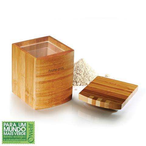 Pote para Farinha em Bambu com tampa. Acompanha pote interno de Plástico. Capacidade: 600ml Produtos confeccionados em Bambu:Utilizamos o Bambu, por ser uma matéria prima ecológica, autossustentável e com alta resistência. Além de versátil, o Bambu é 30% mais leve que as madeiras de lei. Sua utilização não agride o meio ambiente, pois, quando ceifado rebrota em pouco tempo.