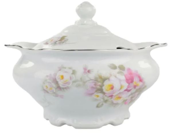 Dias frios, ou que pedem refeições leves são ideais para sopas. E elas merecem um lugar de destaque a mesa. Para isso existem as sopeiras. A sopeira da Porcelana Schmidt tem capacidade de 3.000ml, perfeita para receber a família toda. Com tampa, garante que a sopa mantenha a temperatura ideal. A linha Vitoria traz destaque à mesa daqueles que fazem questão de um ambiente de requinte, romântico e com detalhes que chamam a atenção. A identidade da linha fica por conta das flores, pintadas em tons pastéis, e finalizadas com um relevo e filetado de prata nas bordas.