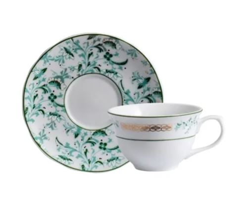 A decoração BÚZIOS traduz esta elegância, com delicados detalhes em ouro e com mini flores em vários tons de verde que, harmonizam com as linhas orgânicas do delicado modelo Izabel.