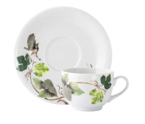 Medidas: Xicara 7,7cm de diâmetro e altura de 6,3cm. Pires 14,5cm de diâmetro e altura de 2cm. Capacidade para 200ml.