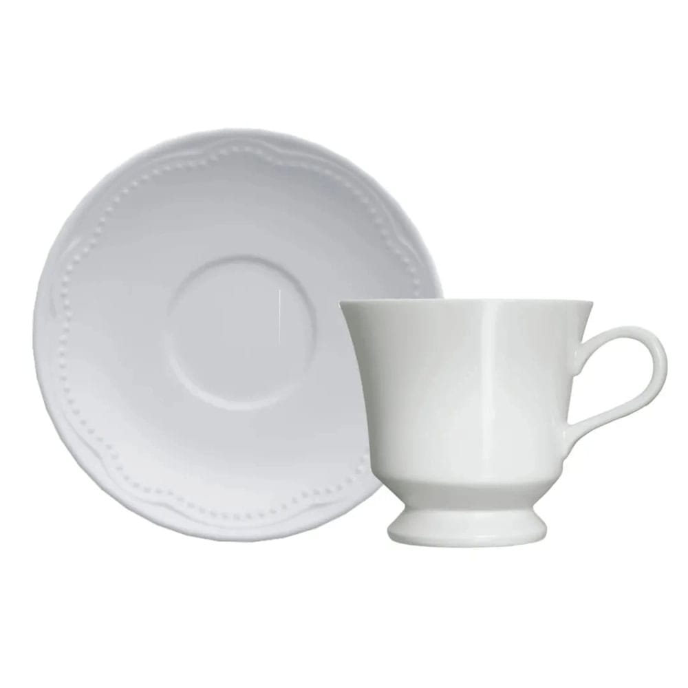 01 Xícara de chá com Pires Cottage relevo Porcelana Branca GermerEMBALAGEM CONTENDO 01 UNIDADEMATERIAL PORCELANAA Linha Cottage da Germer é ideal para o sua para sua casa, restaurante ou padaria. Com formato redondo de fácil emplihamento não ocupa muito espaço. – Funcionalidades: Para os momentos de servir um café ou chá para seus convidados você precisa da melhor porcelana branca nacional. Está xicara já acompanha seu pires com detalhes em relevo para harmonizar ainda mais com qualquer tipo de ambiente – Características: Produto Nacional, fabricado em porcelana de alta qualidade, queimados à uma temperatura próxima dos 1.340°C, elas não absorvem água em função da porosidade nula, garantindo higienização perfeita, além de maior resistência à impactos mecânicos. Nossas peças possuem como acabamento um resistente esmalte que pode ser submetido ao efeito abrasivo das lava-louças e micro-ondas. – Dimensões dos Produtos: · Volume: 190ml ·Altura: 7,5cm ·Diâmetro Xícara: 8,5cm